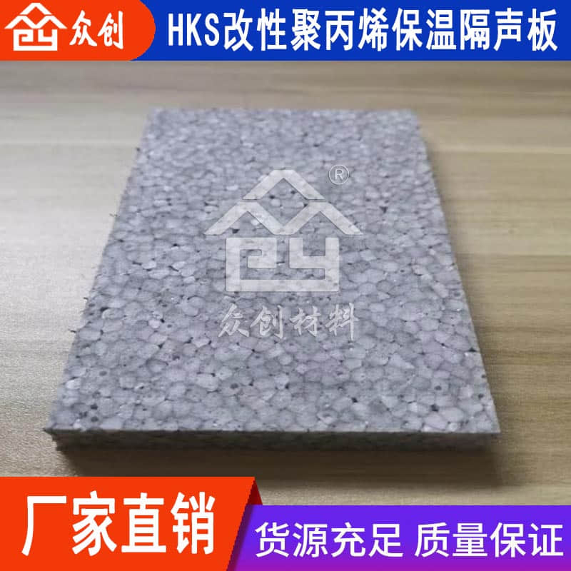 HKS改性聚丙烯保溫隔聲板是由浙江眾創(chuàng)材料科技有限公司研發(fā)生產(chǎn)的新型epp樓地面保溫隔聲材料,主要是為了解決樓層與樓層之間的保溫隔聲問題。